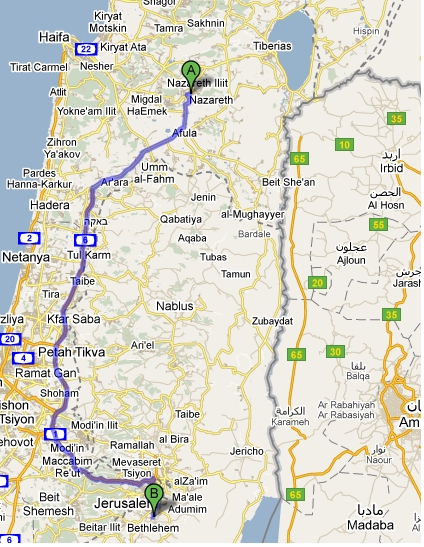 Since Caesar gots to get paid, he sent out a decree to the far ends of the land (or however far decrees can reach) and Mary and Joseph had to go to Joseph’s hometown to register. So for those of you who complain about filling out a census, according to GoogleMaps, Nazareth to Bethlehem is about 170km (about 105 miles). Now, unfortunately, GoogleMaps does not have “By Donkey” directions, but I’m assuming it took a few days. So a few days walking in the desert with a pregnant woman who keeps insisting she’s a “virgin” but will still ride on the donkey. I don’t know if you’ve ever been on a road trip with a pregnant woman, but I can guess it’s on no one’s bucket list.